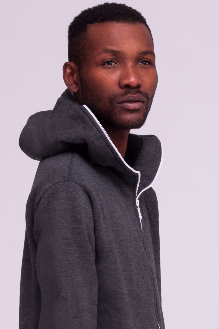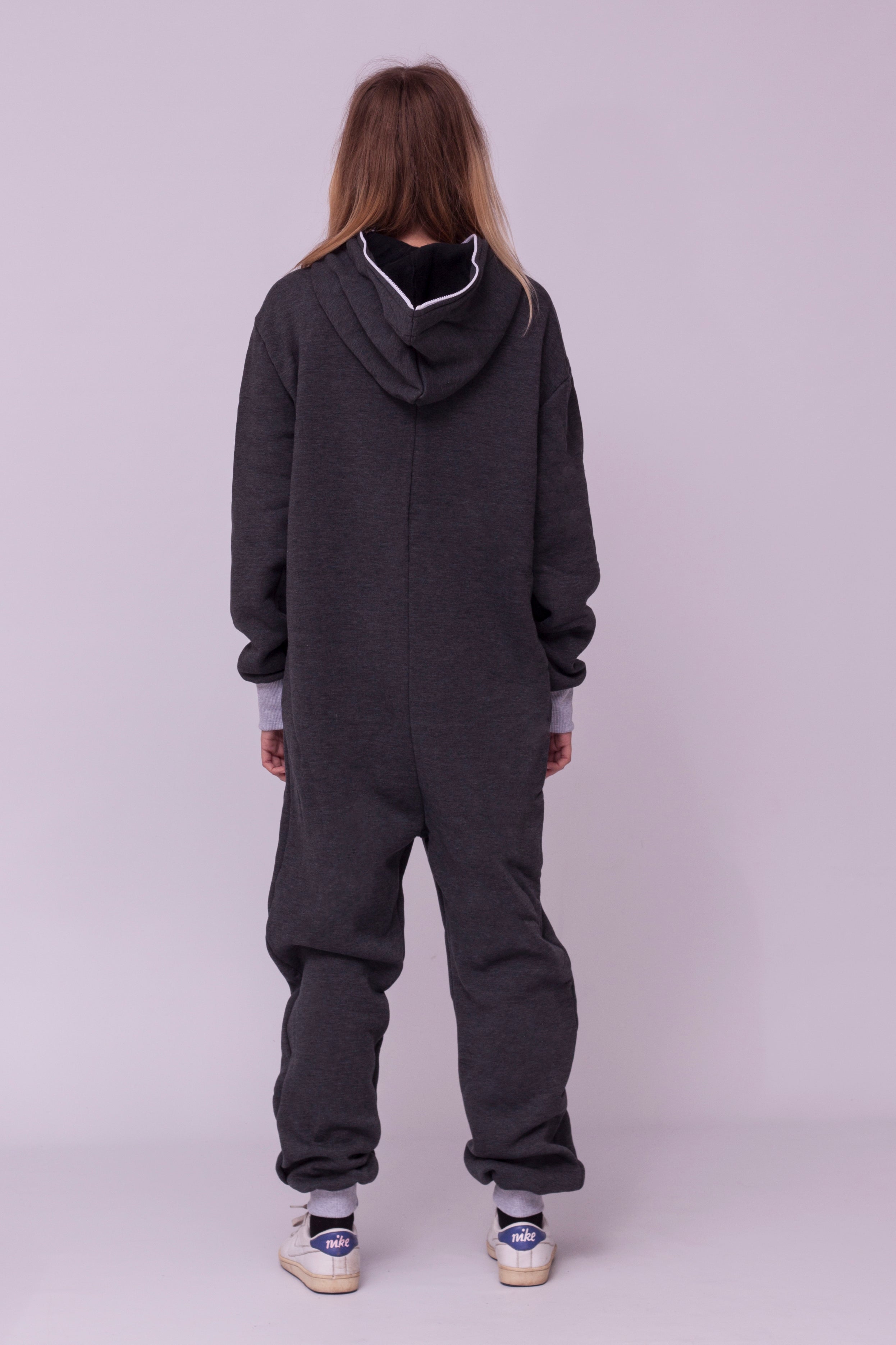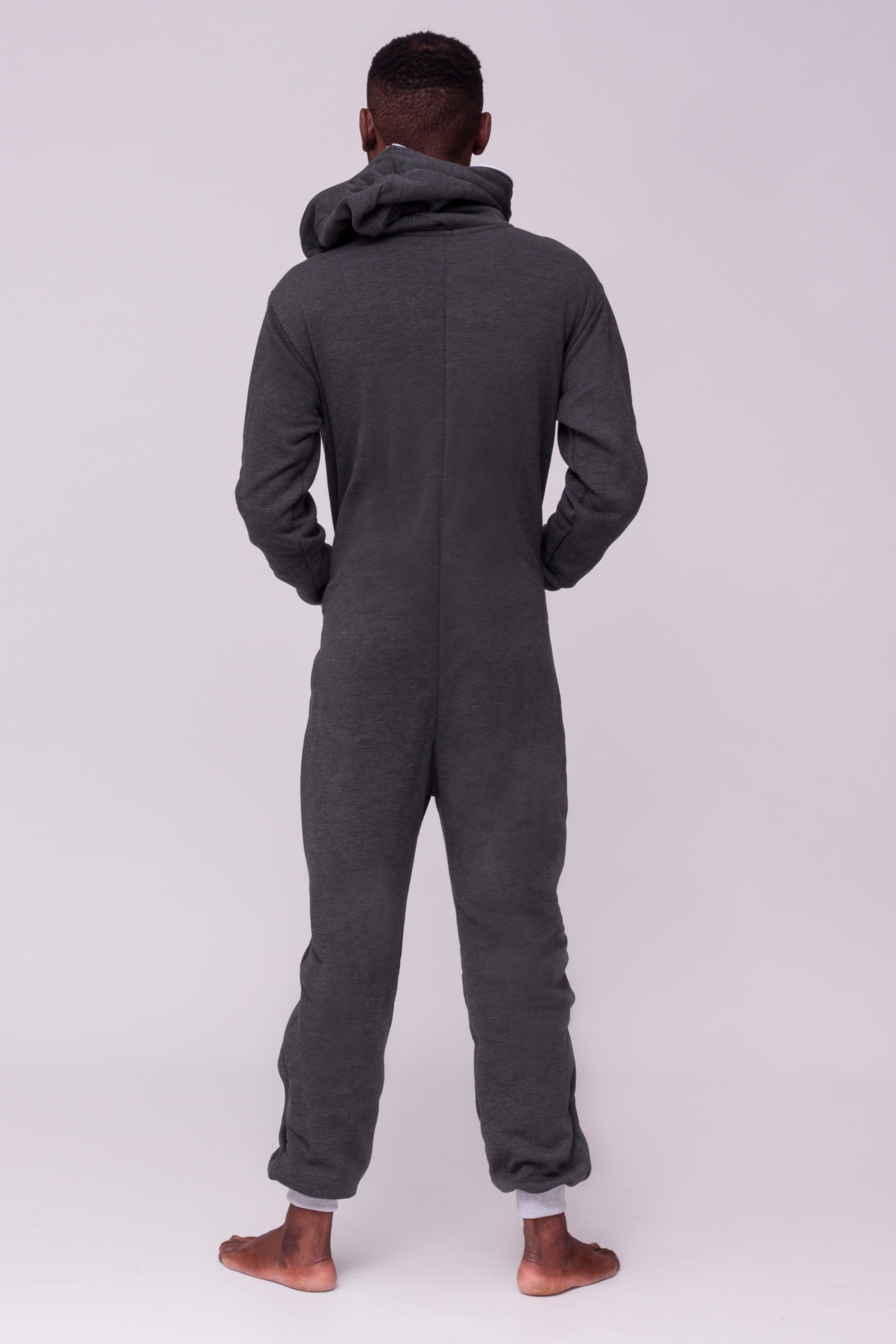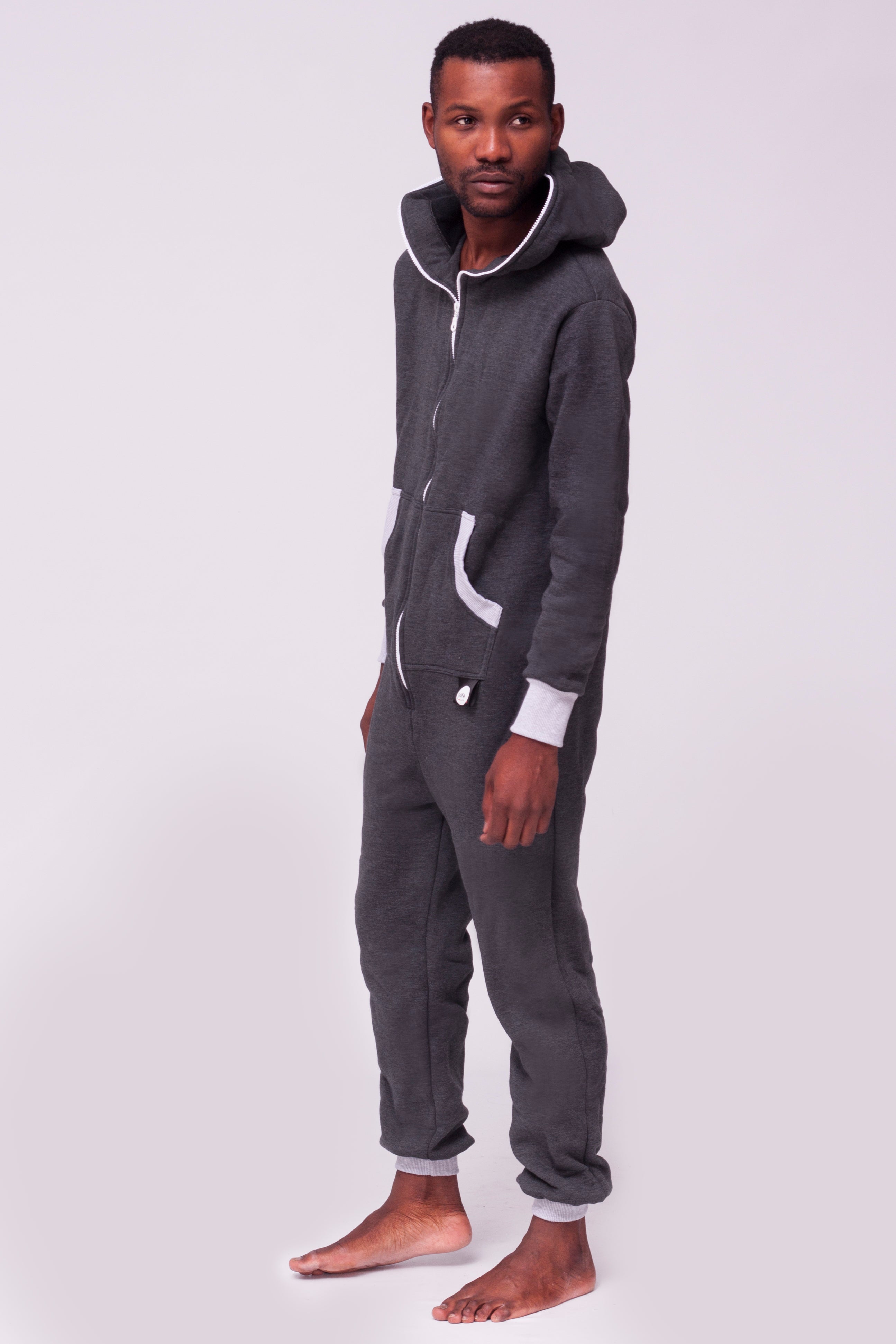 A subtle contrast design featuring dark grey fabric with light grey cuffs. This matching couple jumpsuit balances comfort and modern style.